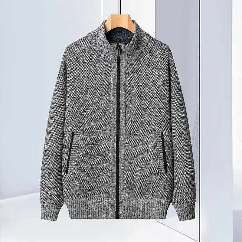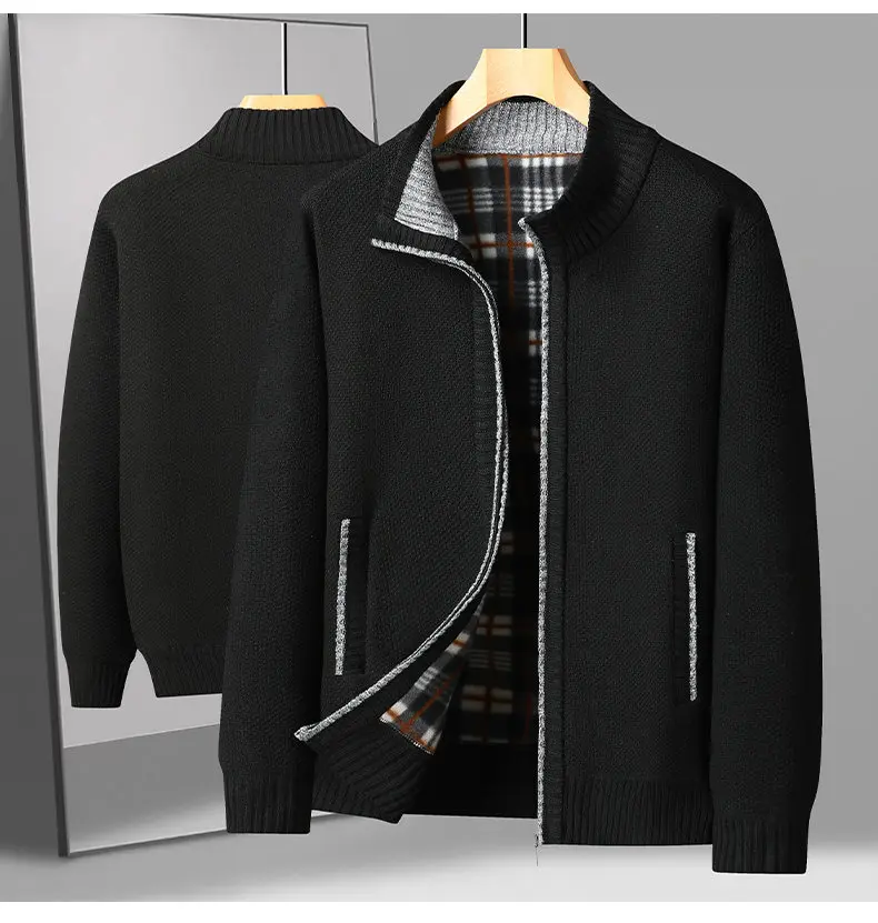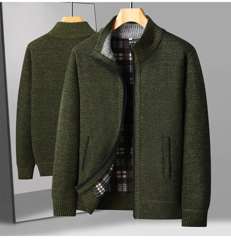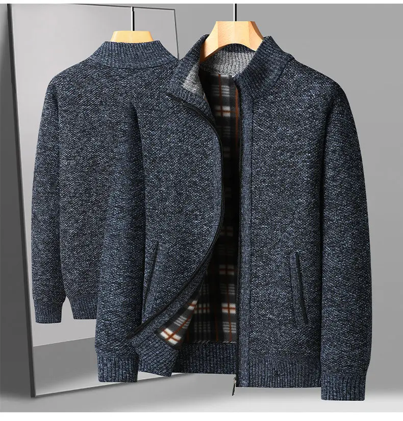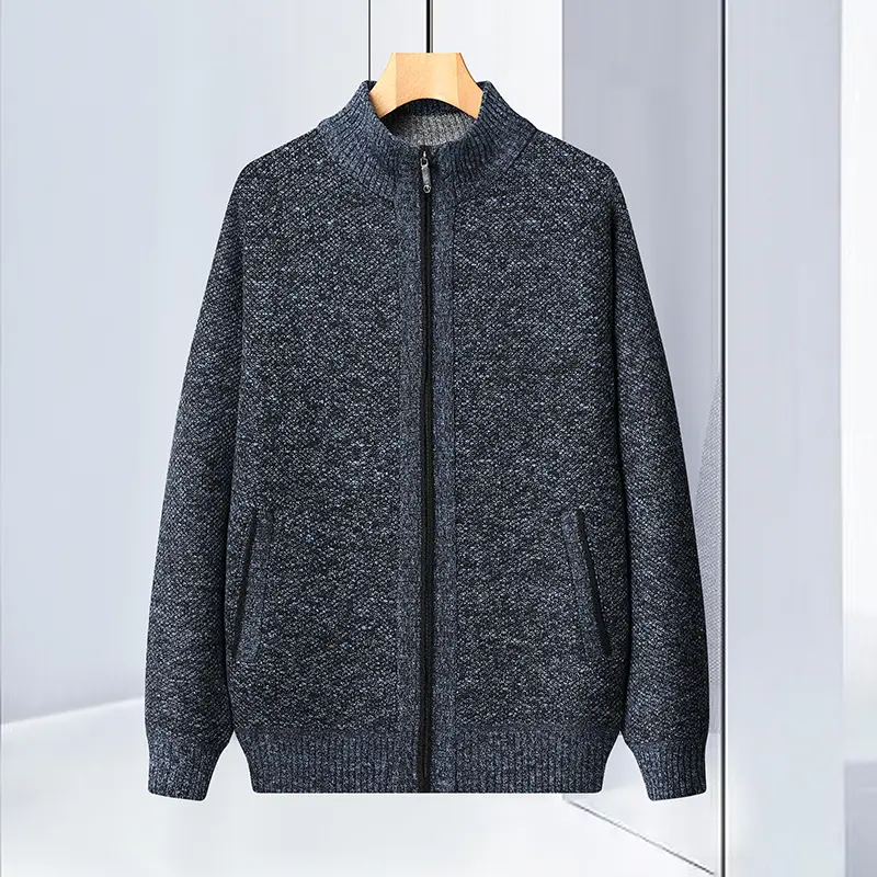 Craft of Weaving:Knit Applicable Season:Autumn,Winter Item Type:Sweater Coat Sleeve Length:Full Thickness:Thick Technics:Flat Knitted Material:Polyester Color:Black,Dark-blue,Dark-green,Gray,Khaki Size:S-3XL Collar:Mandarin Collar Style:Casual Closure Type:Zipper Gender:Men..